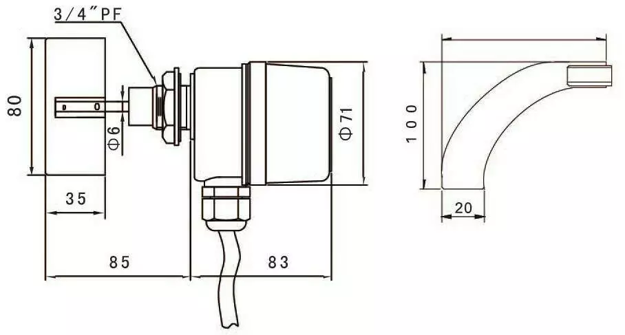 Установка: Резьба 3/4' PF