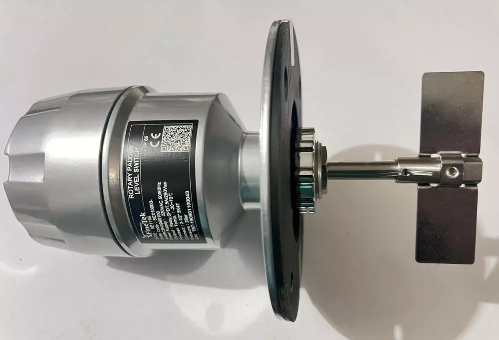 Датчик измеряет верхний, нижний или средний уровень материала. В свободном вращении лопасть делает 1 оборот в минуту. Когда уровень материала доходит до лопасти и препятствует вращению, прибор останавливается, срабатывает микропереключатель, появляется сигнал индикации об уровне материала.