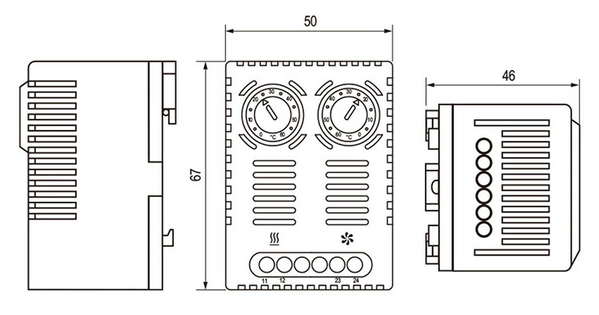 Термостат NTL 71-F — это компактное устройство, главная задача которого заключается в поддержании устойчивого температурного режима внутри шкафа с электрооборудованием для защиты от перегрева или переохлаждения.