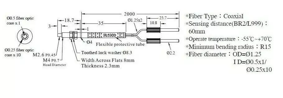 Внутренний диаметр оптического волокна: Ø0,25 мм * 10мм
